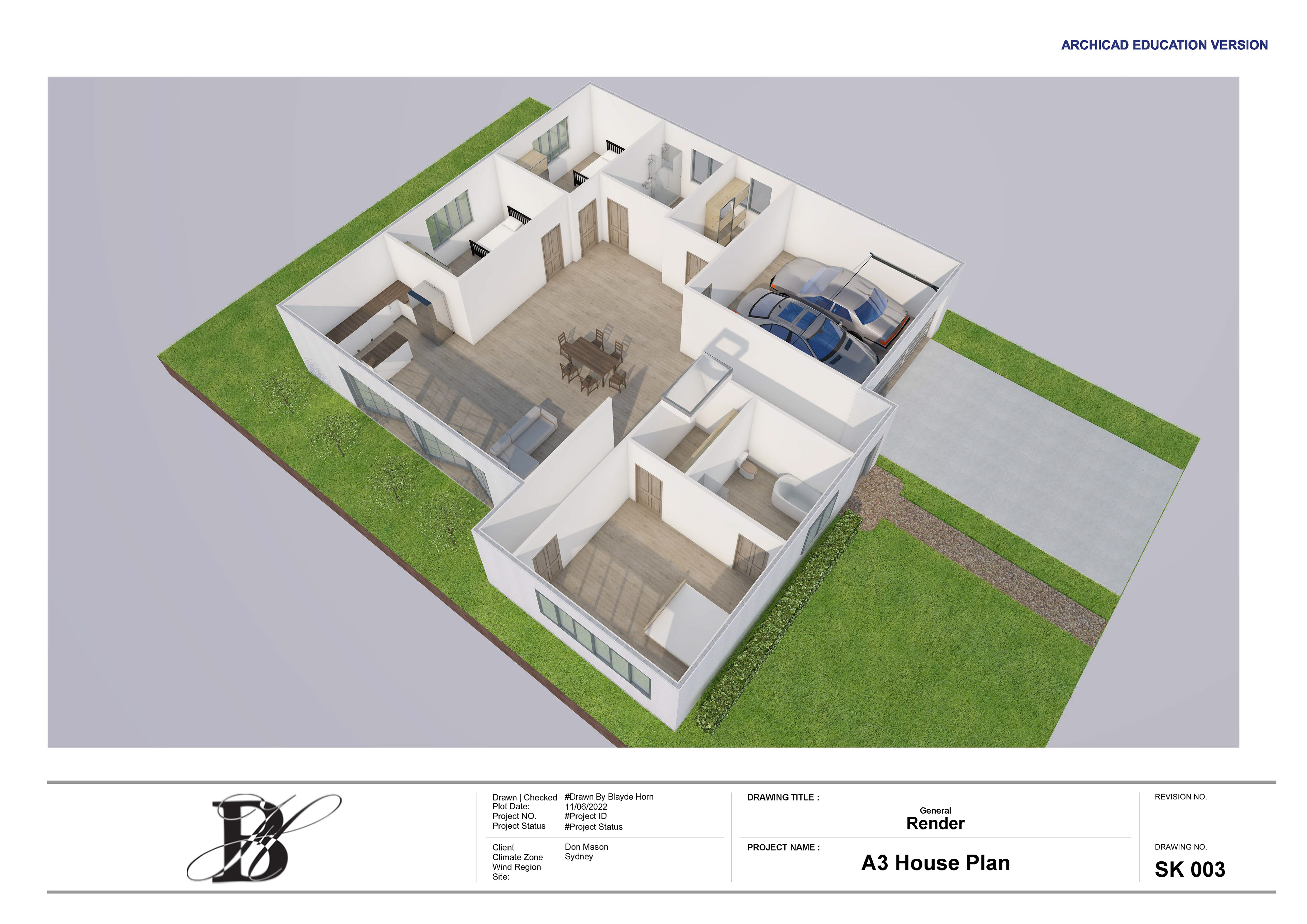 This project is a sustainable house design for a Sydney suburban area. It explores the use of sustainability techniques and is designed in order to minimise the use of electrical heating and cooling.